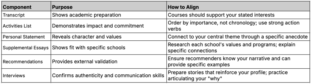 Key Principle: These pillars should interconnect. If you’re interested in healthcare, your academic pillar might include AP Biology and a medical summer program; your impact pillar could be volunteering at a hospital; your personal pillar might be a health blog you started.